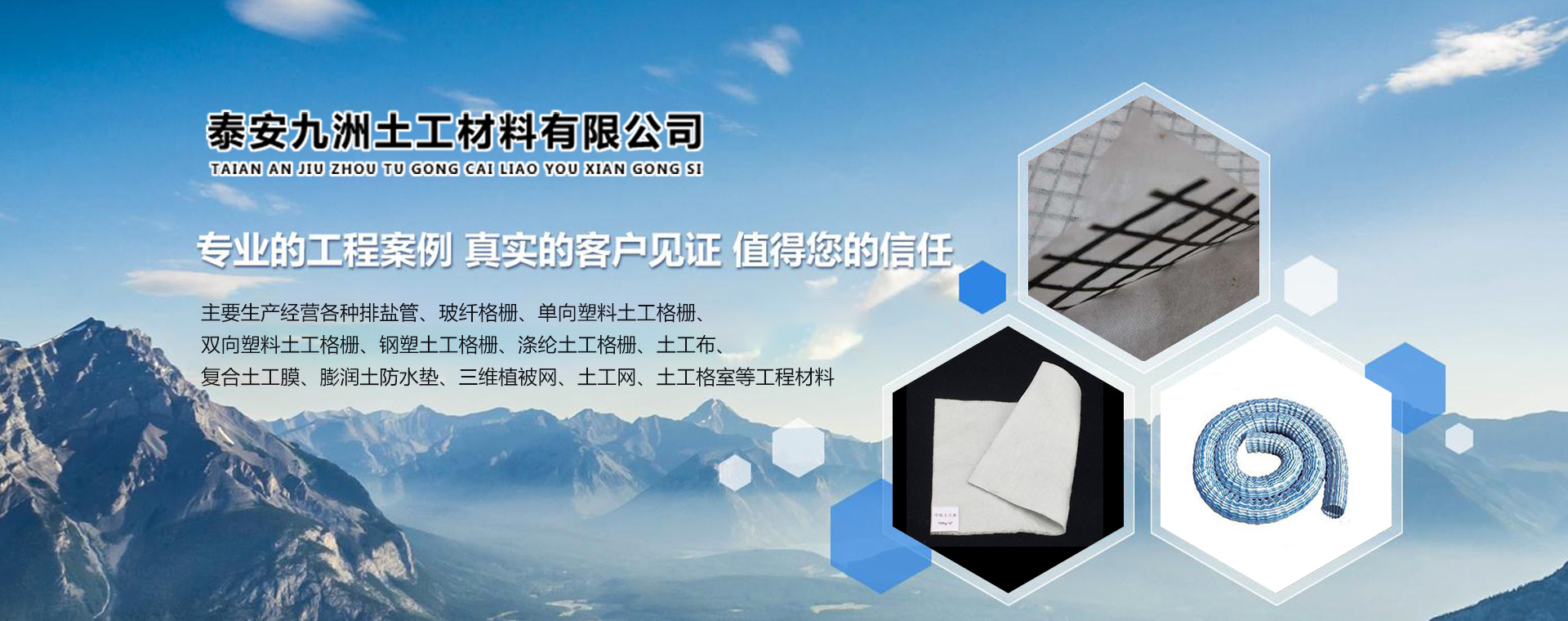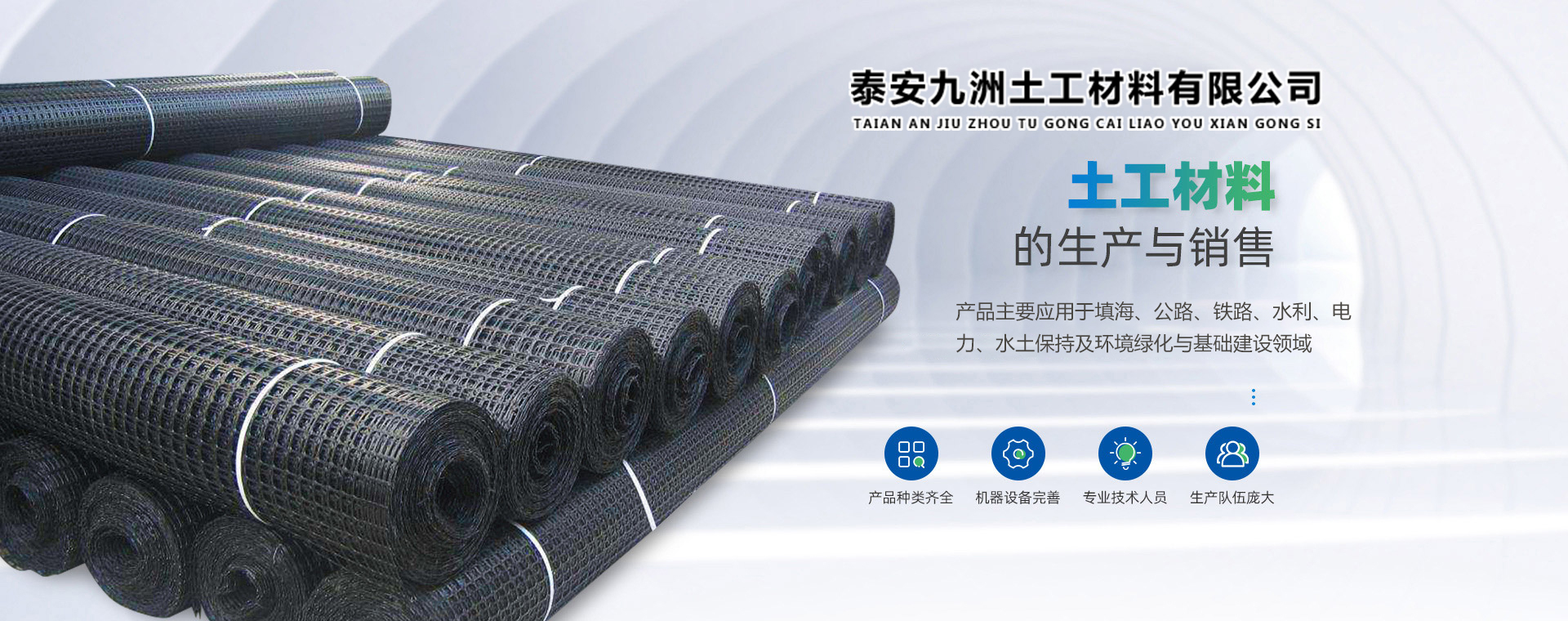 泰安九洲土工材料有限公司 泰安九洲土工材料有限公司位于馳名中外的“泰山”腳下——泰安高新技術開發區,周邊風景秀麗,環境優雅,西距旅游勝地泰山10公里,南距文化名城孔府(曲阜)70公里,東距萊蕪40公里,北距省城濟南國際機場80公里,交通便利,京滬高速路、泰萊一級高速路,老泰萊路和泰新路橫穿東西,文化路和崗羊路縱貫南北。 公...